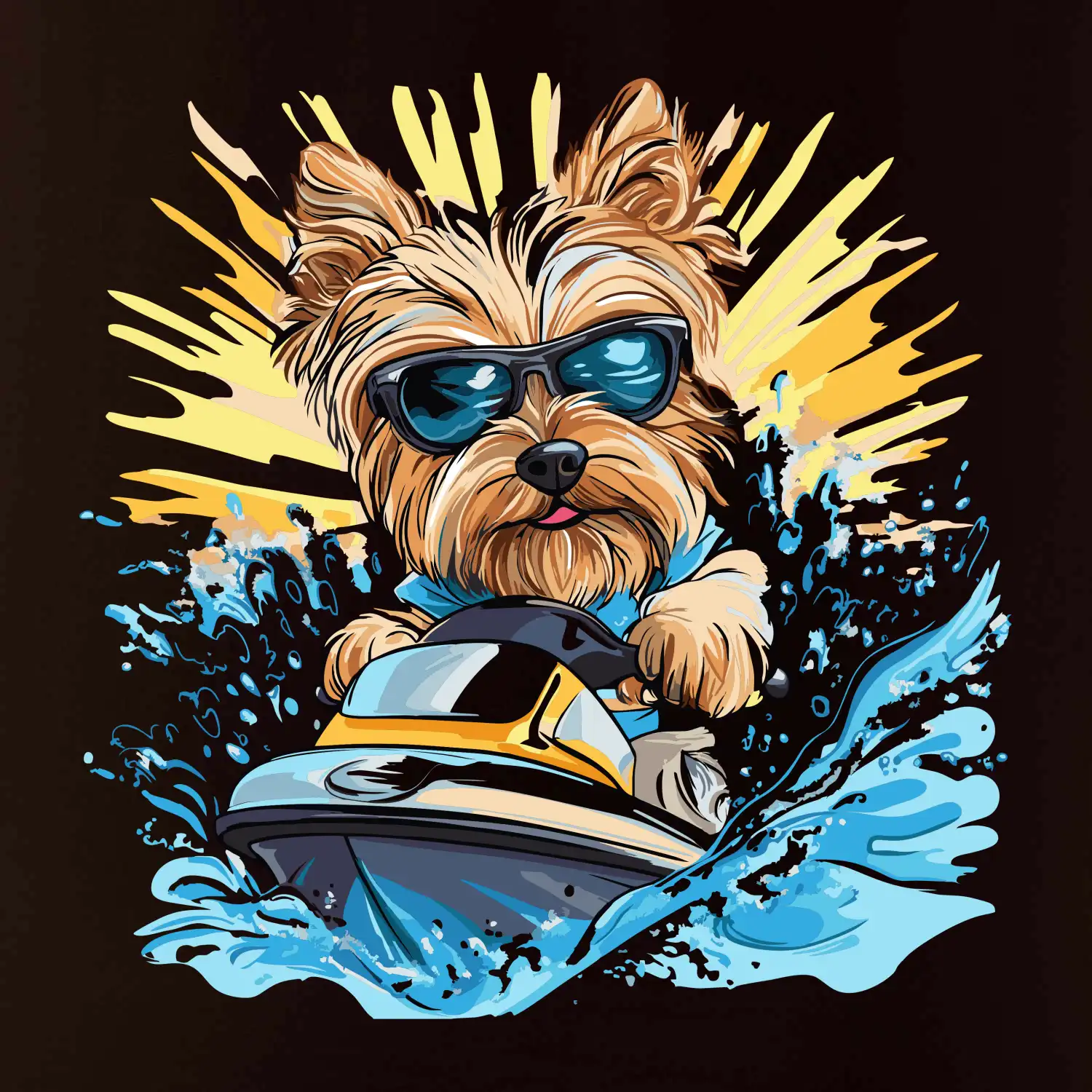 Yorkšírsky teriér na vodnom skútri