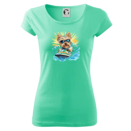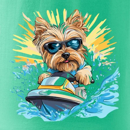 Yorkšírsky teriér na vodnom skútri