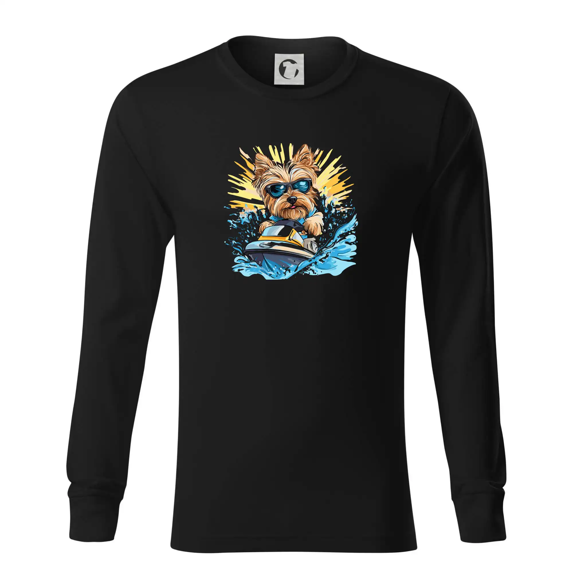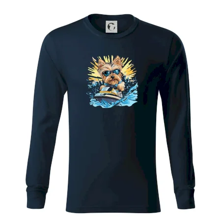 Yorkšírsky teriér na vodnom skútri
