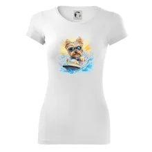 Yorkšírsky teriér na vodnom skútri