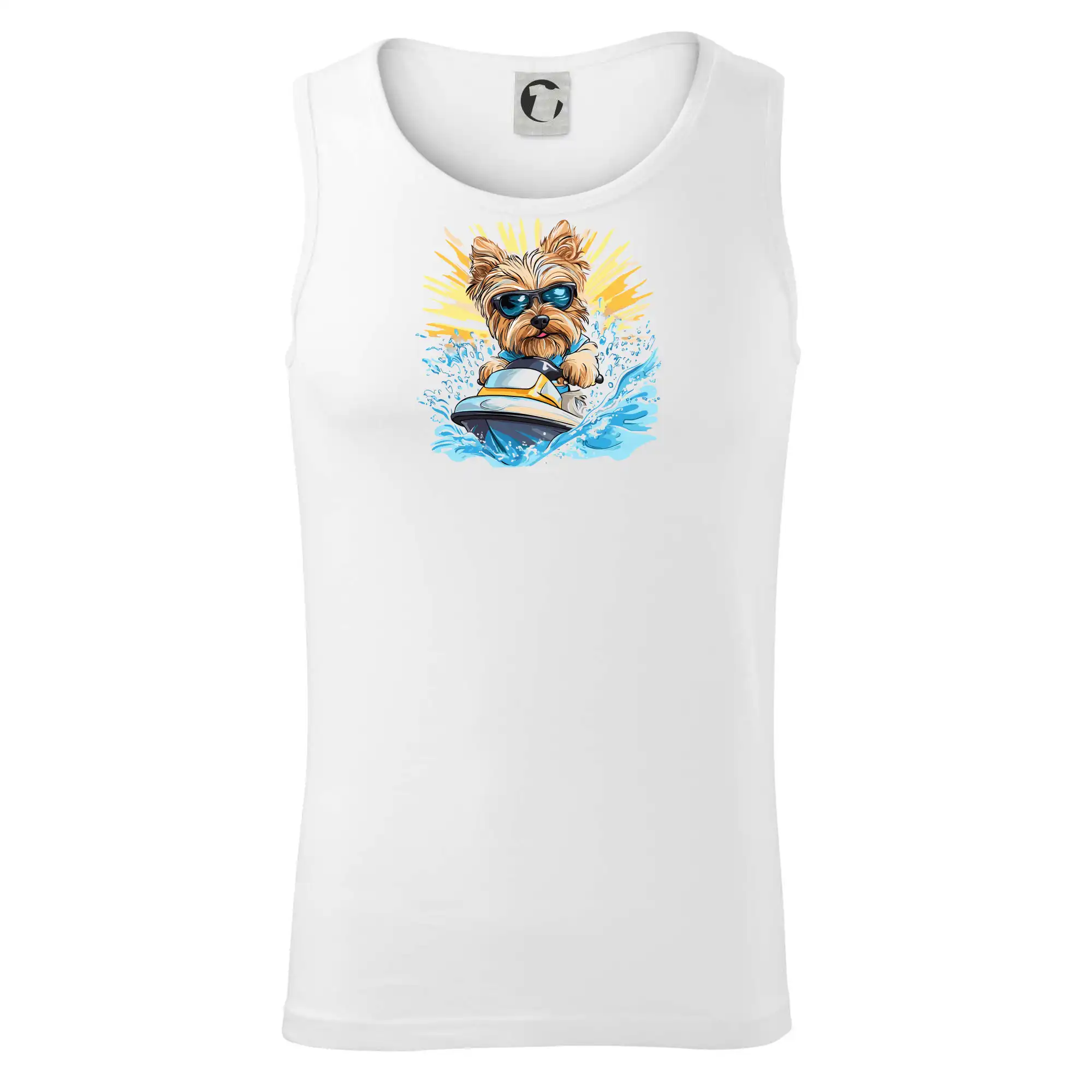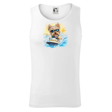 Yorkšírsky teriér na vodnom skútri