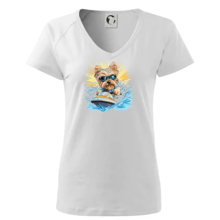Yorkšírsky teriér na vodnom skútri