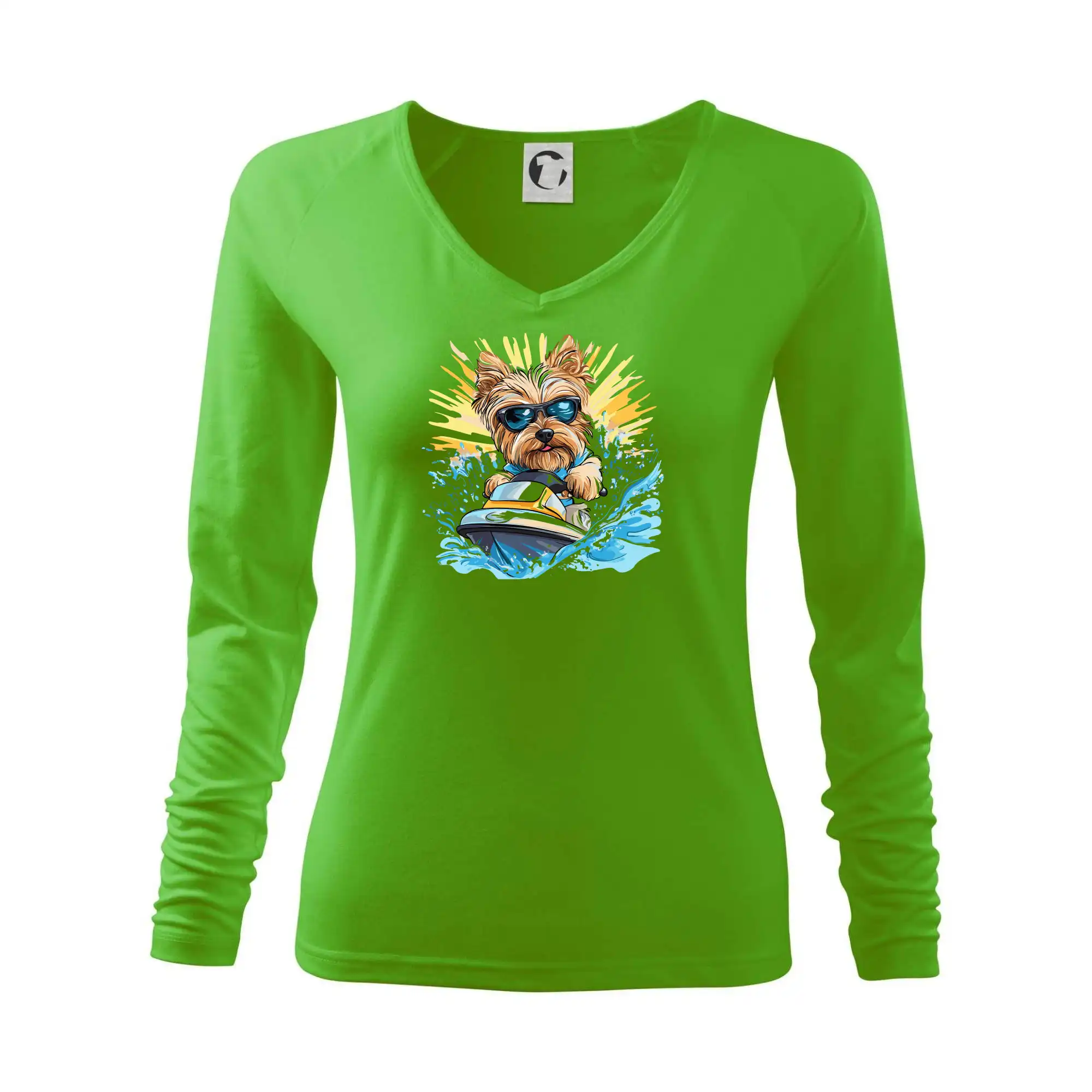 Yorkšírsky teriér na vodnom skútri