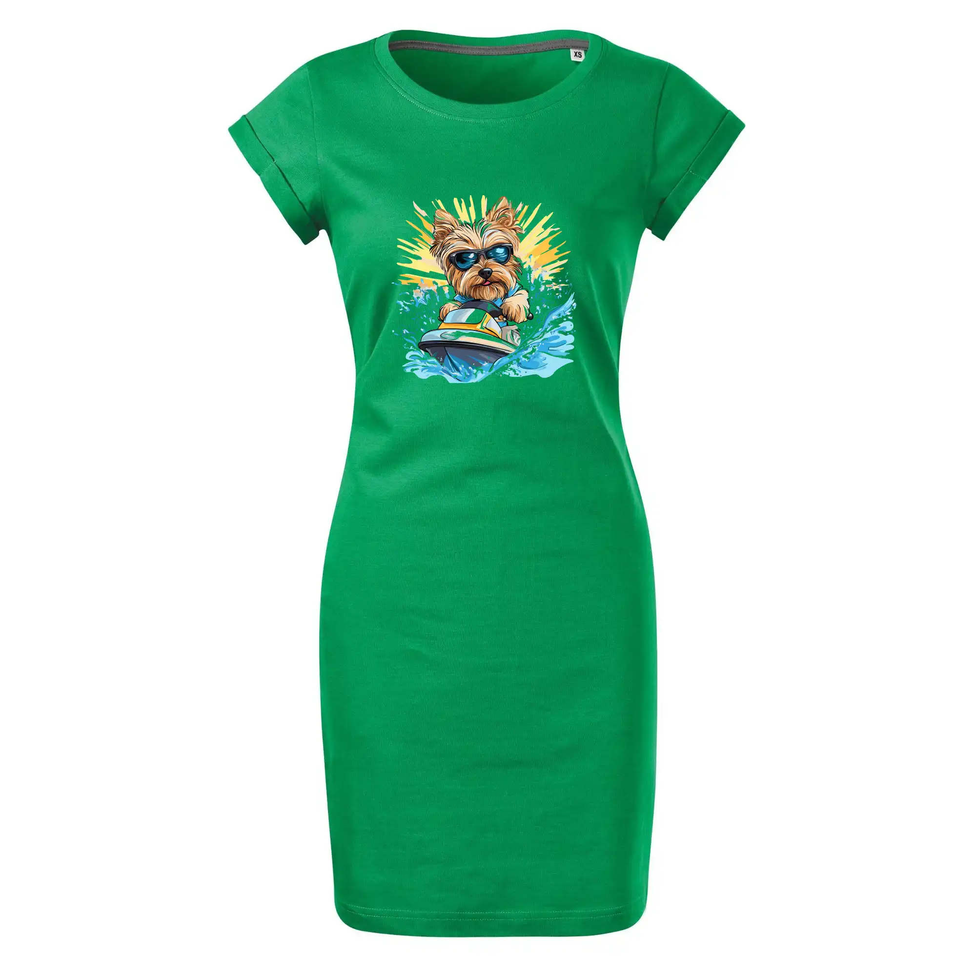 Yorkšírsky teriér na vodnom skútri