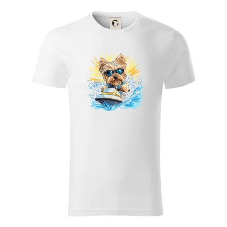 Yorkšírsky teriér na vodnom skútri