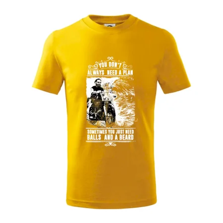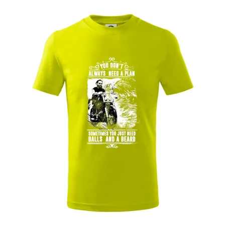 Detské tričko strednej gramáže s bočnými švami. Úzky priekrčník s prídavkom 5% elastanu. Vnútorná časť zadného priekrčníka začistená tkanou páskou. Spevnený ramenný šev.