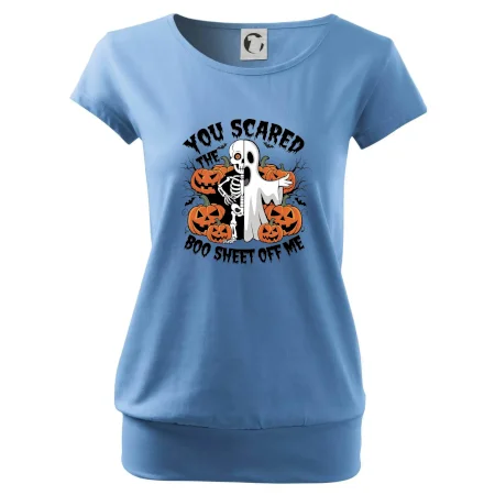 Trendové dámske tričko s veľmi krátkym rukávom, voľnejšieho strihu, v dolnom kraji všité do širokého lemu. Okrúhly priekrčník s úzkym lemom zo zhodného materiálu.