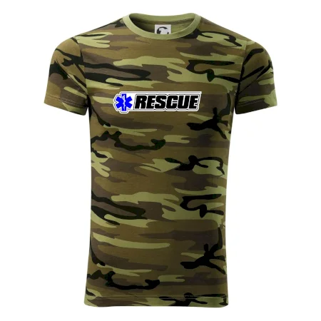 Tričko strednej gramáže vo farbách camouflage. Strih s bočnými švami. Lem priekrčníku z rebrového úpletu s prídavkom 5% elastanu. Vnútorná časť zadného priekrčníka začistená páskou vo farbe camouflage.
