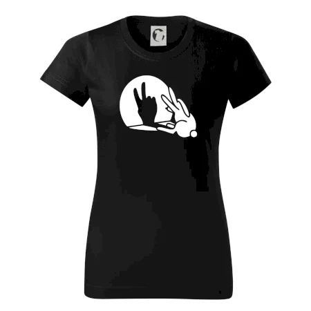 Stínový zajíc na triku s motivem míru, který zná snad každý na světě.