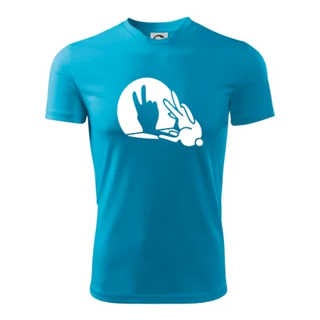 Stínový zajíc na triku s motivem míru, který zná snad každý na světě.