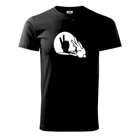 Stínový zajíc na triku s motivem míru, který zná snad každý na světě.
