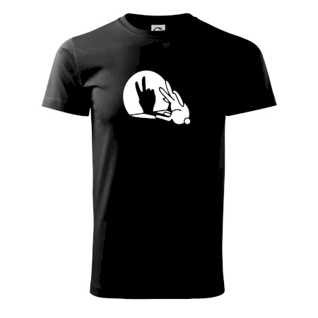 Stínový zajíc na triku s motivem míru, který zná snad každý na světě.