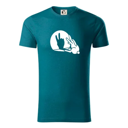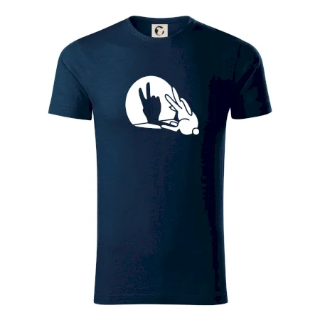 Stínový zajíc na triku s motivem míru, který zná snad každý na světě.