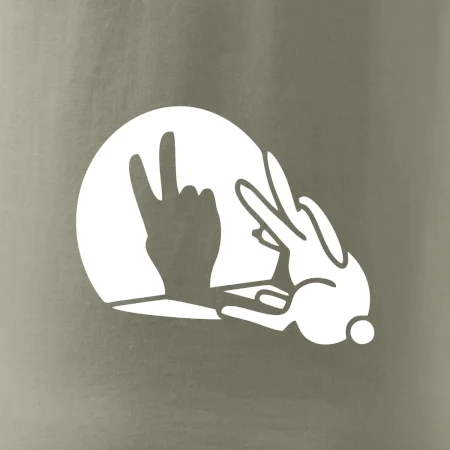 Stínový zajíc na triku s motivem míru, který zná snad každý na světě.
