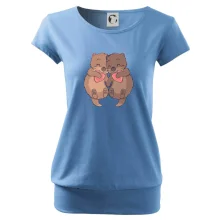 Trendové dámske tričko s veľmi krátkym rukávom, voľnejšieho strihu, v dolnom kraji všité do širokého lemu. Okrúhly priekrčník s úzkym lemom zo zhodného materiálu.