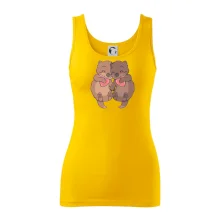 Ramená spevnené všitým prúžkom. Tričko siaha do hĺbky bokov. Silikónová úprava zabezpečuje mäkký a splývavý omak.