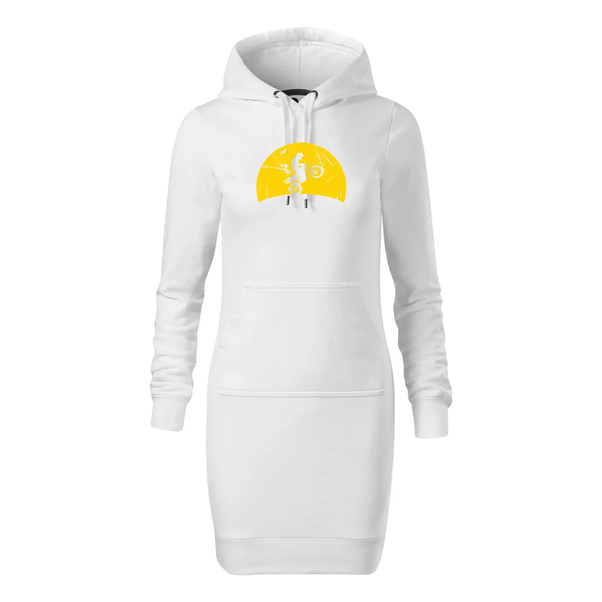 Dámske mikinové šaty MALFINI Snap 419 sú ideálnou voľbou pre ženy, ktoré hľadajú pohodlný a štýlový kúsok na voľný čas alebo každodenné nosenie. Ľahko vypasovaný strih s bočnými švami podčiarkuje ženskú siluetu, zatiaľ čo kapucňa s podšívkou a sťahovacou šnúrkou dodáva ležérny vzhľad. Šaty majú dĺžku nad kolená a sú vybavené našitým vreckom v štýle „klokanky“. Materiál je mäkký a príjemný na dotyk grâce à smesi bavlny a polyesteru s nepočesanou vnútornou stranou.