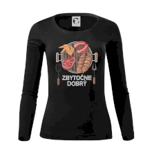 Tolerantnejšie priliehavý dámsky strih, ktorý je vhodný pre všetky typy postavy, ideálna dĺžka rukávov a konzervatívny výstrih zakončený rebrovaním, ktoré skvele drží tvar.