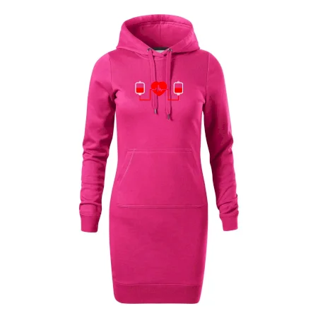 Dámske mikinové šaty MALFINI Snap 419 sú ideálnou voľbou pre ženy, ktoré hľadajú pohodlný a štýlový kúsok na voľný čas alebo každodenné nosenie. Ľahko vypasovaný strih s bočnými švami podčiarkuje ženskú siluetu, zatiaľ čo kapucňa s podšívkou a sťahovacou šnúrkou dodáva ležérny vzhľad. Šaty majú dĺžku nad kolená a sú vybavené našitým vreckom v štýle „klokanky“. Materiál je mäkký a príjemný na dotyk grâce à smesi bavlny a polyesteru s nepočesanou vnútornou stranou.