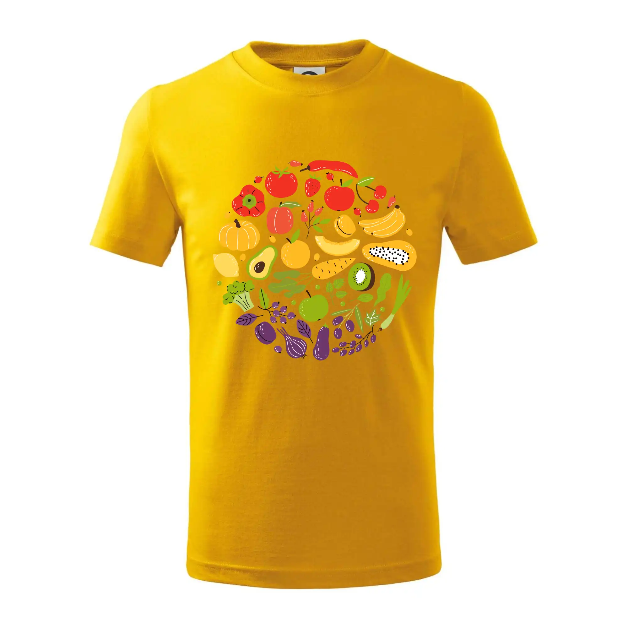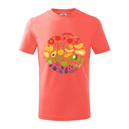 Detské tričko strednej gramáže s bočnými švami. Úzky priekrčník s prídavkom 5% elastanu. Vnútorná časť zadného priekrčníka začistená tkanou páskou. Spevnený ramenný šev.