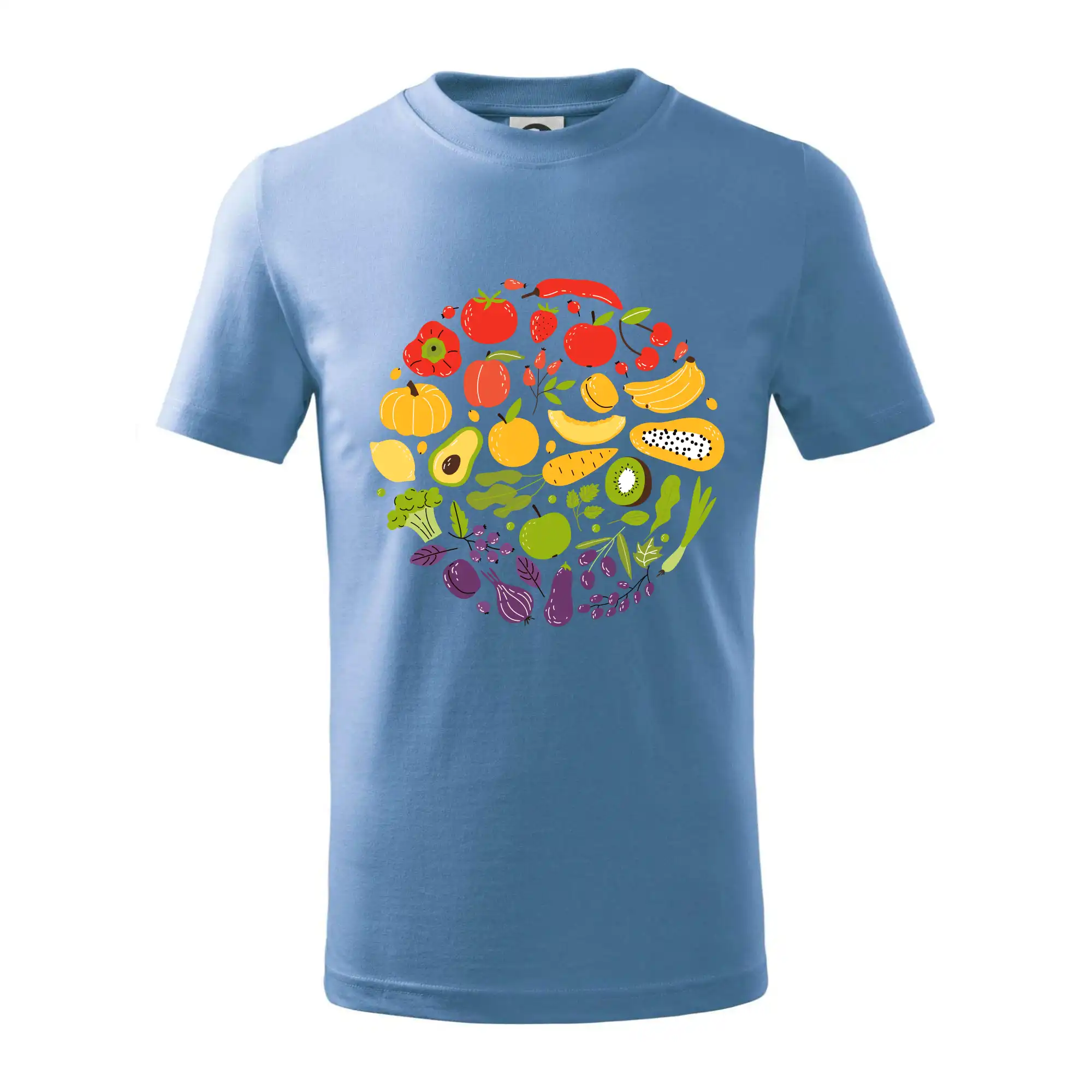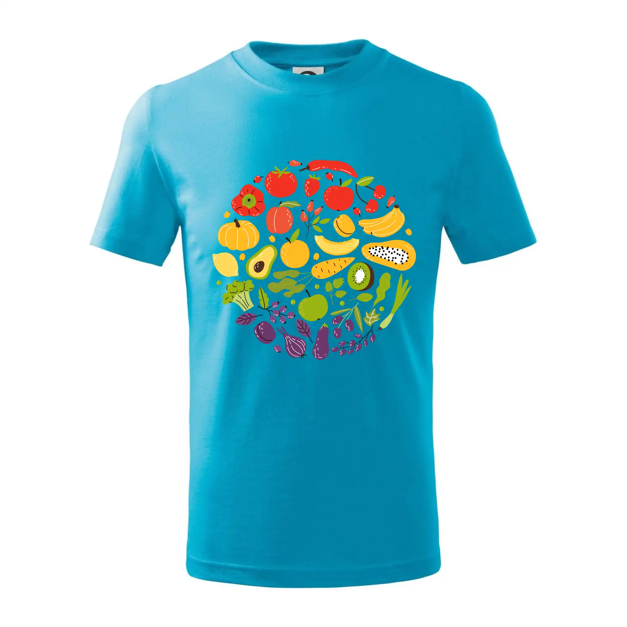 Detské tričko strednej gramáže s bočnými švami. Úzky priekrčník s prídavkom 5% elastanu. Vnútorná časť zadného priekrčníka začistená tkanou páskou. Spevnený ramenný šev.