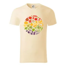 Pánske tričko s krátkym rukávom vyššej gramáže. Módne, priliehavý strih s bočnými švami. Úzky lem priekrčníka z rebrového úpletu s prídavkom 5% elastanu. Vnútorná časť zadného priekrčníku začistená páskou. Spevnený ramenný šev.