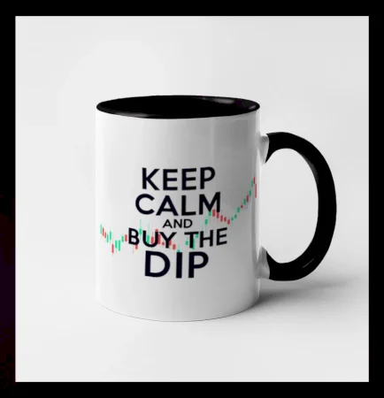 Hobby Kryptomeny Bitcoin, Etherum atd Zelenočervený graf Keep Calm and Buy the Dip