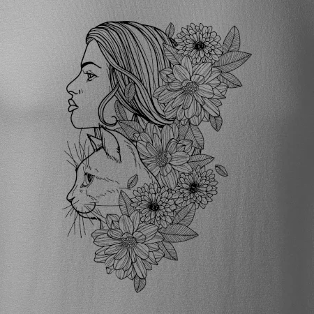 Žena a kočka - kreslená
