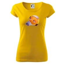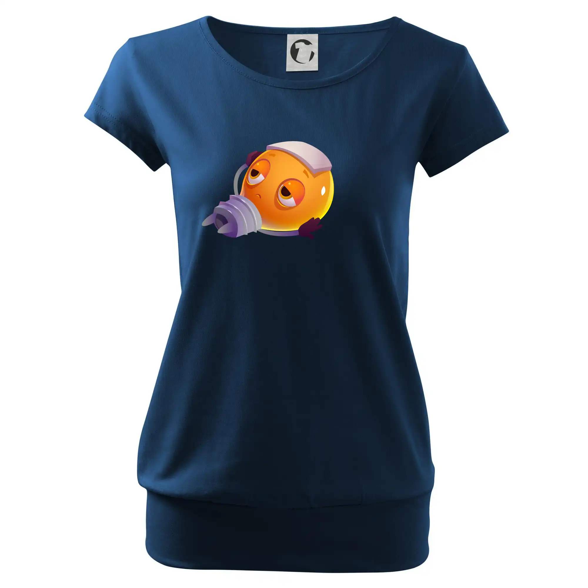 Trendové dámske tričko s veľmi krátkym rukávom, voľnejšieho strihu, v dolnom kraji všité do širokého lemu. Okrúhly priekrčník s úzkym lemom zo zhodného materiálu.