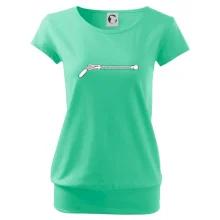 Trendové dámske tričko s veľmi krátkym rukávom, voľnejšieho strihu, v dolnom kraji všité do širokého lemu. Okrúhly priekrčník s úzkym lemom zo zhodného materiálu.