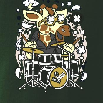 Tričko pre bubeníka, na ktorom je žirafa s bicími. Ukáž, že vieš hrať lepšiu hudbu ako žirafa, a že si poriadny rocker a zviera! Každý bubeník alebo hudobník, ktorému niečo hovoria bubny, by si toto tričko, kde je bubon, zaobstarať.