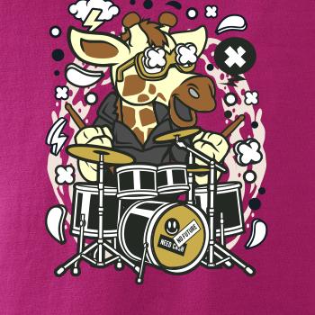 Tričko pre bubeníka, na ktorom je žirafa s bicími. Ukáž, že vieš hrať lepšiu hudbu ako žirafa, a že si poriadny rocker a zviera! Každý bubeník alebo hudobník, ktorému niečo hovoria bubny, by si toto tričko, kde je bubon, zaobstarať.
