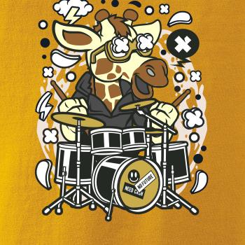 Tričko pre bubeníka, na ktorom je žirafa s bicími. Ukáž, že vieš hrať lepšiu hudbu ako žirafa, a že si poriadny rocker a zviera! Každý bubeník alebo hudobník, ktorému niečo hovoria bubny, by si toto tričko, kde je bubon, zaobstarať.
