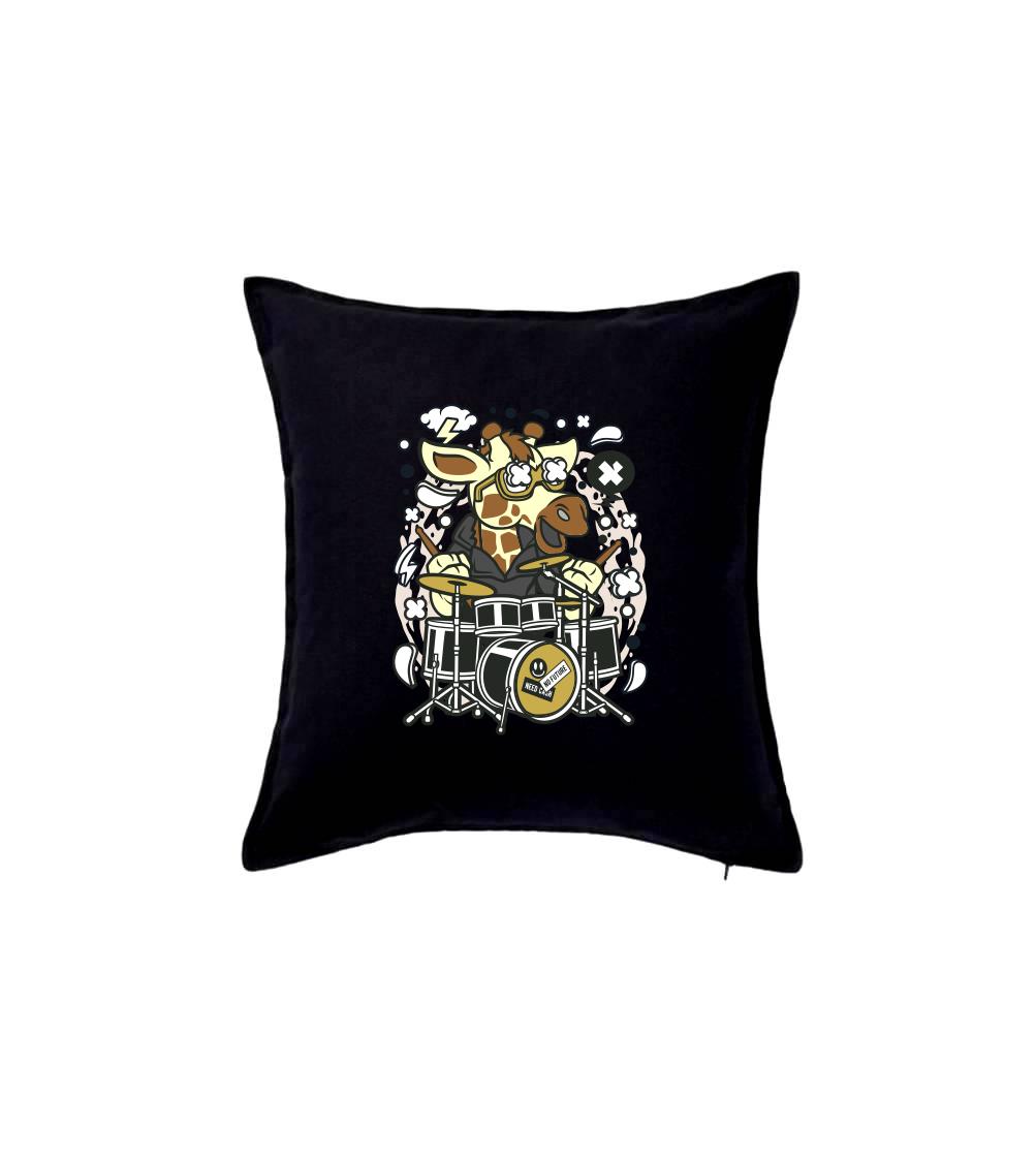 Tričko so žirafou, ktorá hrá na bicích, je vhodný darček pre bubeníka.
