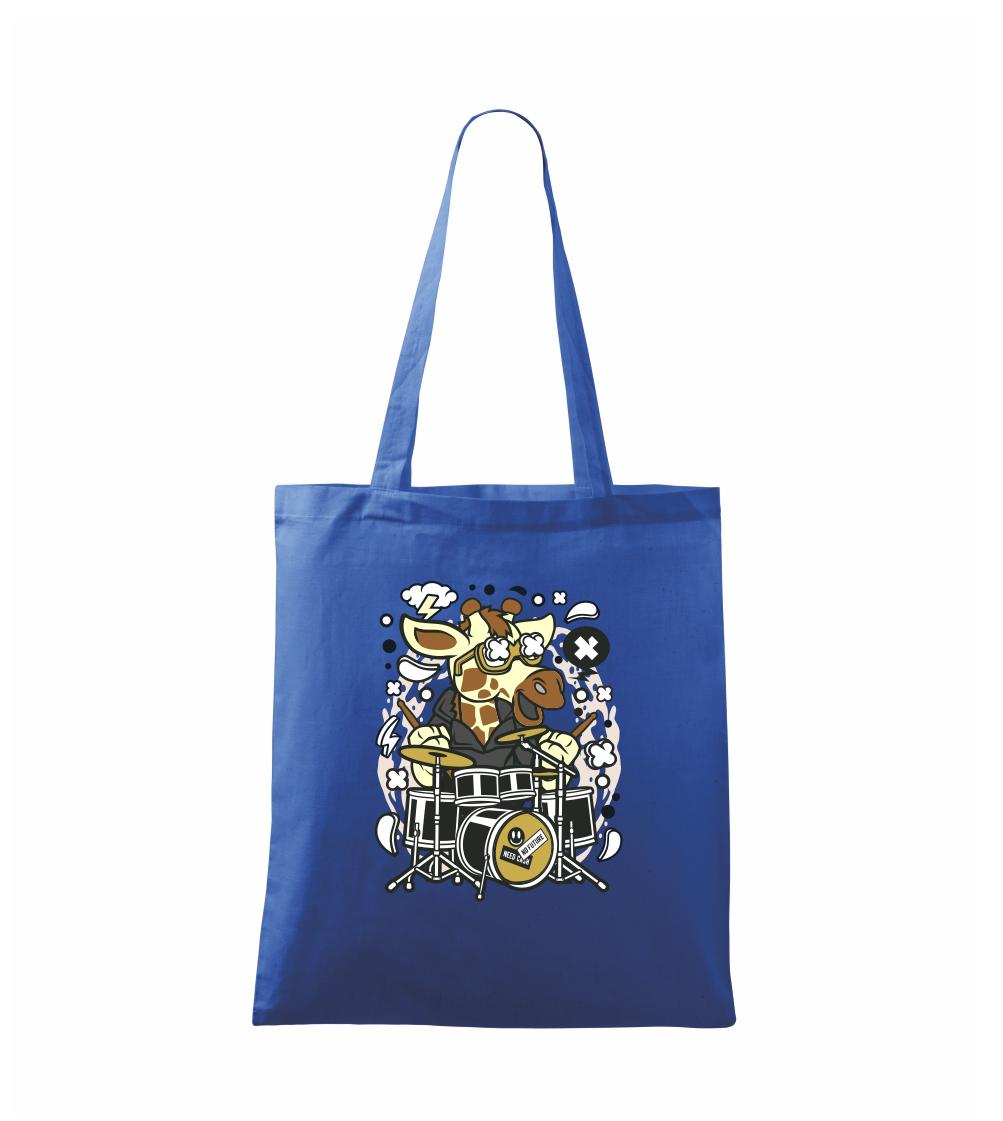 Tričko so žirafou, ktorá hrá na bicích, je vhodný darček pre bubeníka.