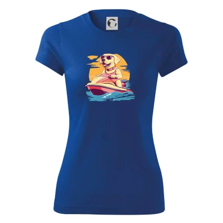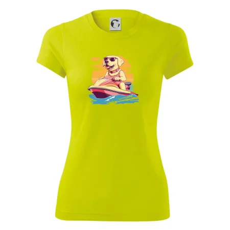 Zlatý retriever na vodnom skútri