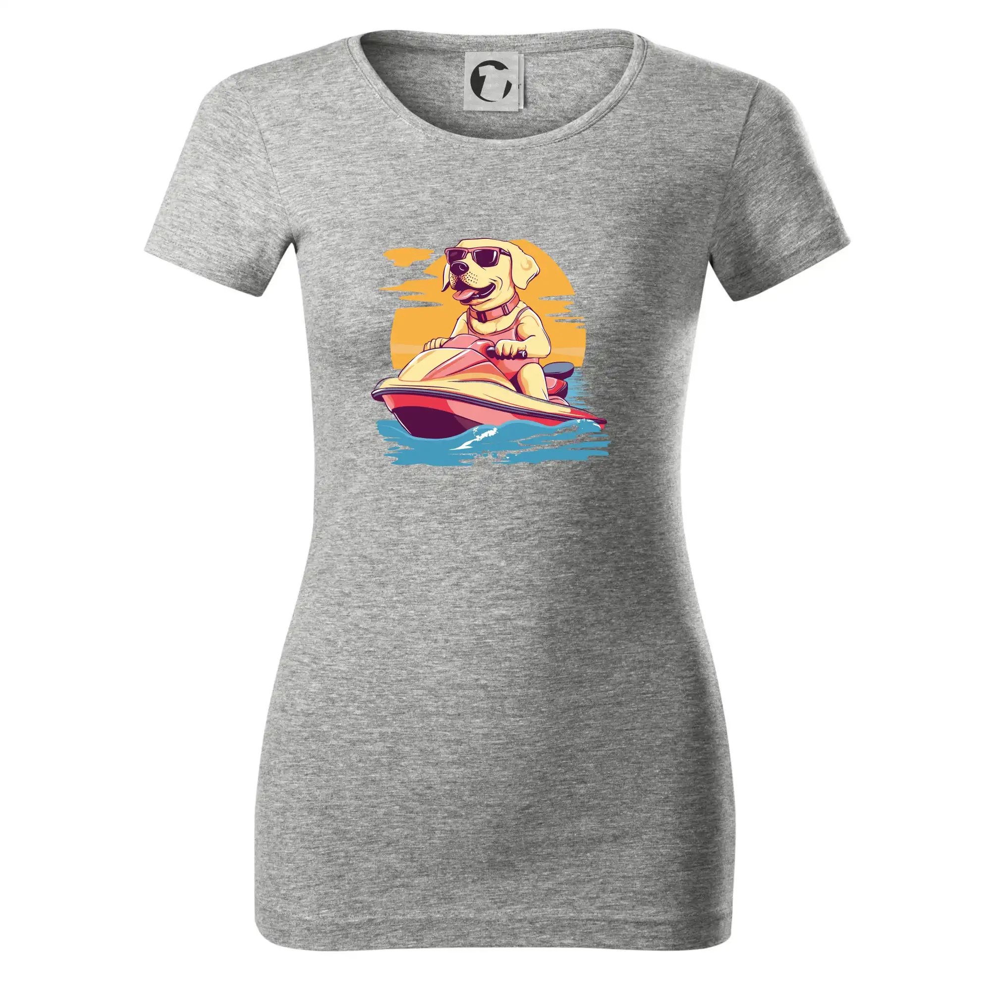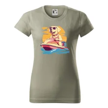 Zlatý retriever na vodnom skútri