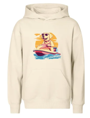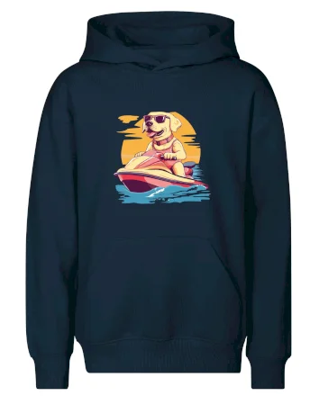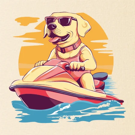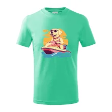 Zlatý retriever na vodnom skútri