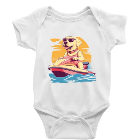 Zlatý retriever na vodnom skútri