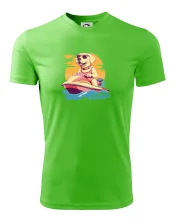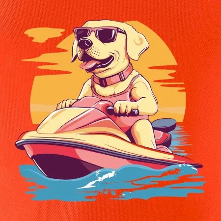 Zlatý retriever na vodnom skútri