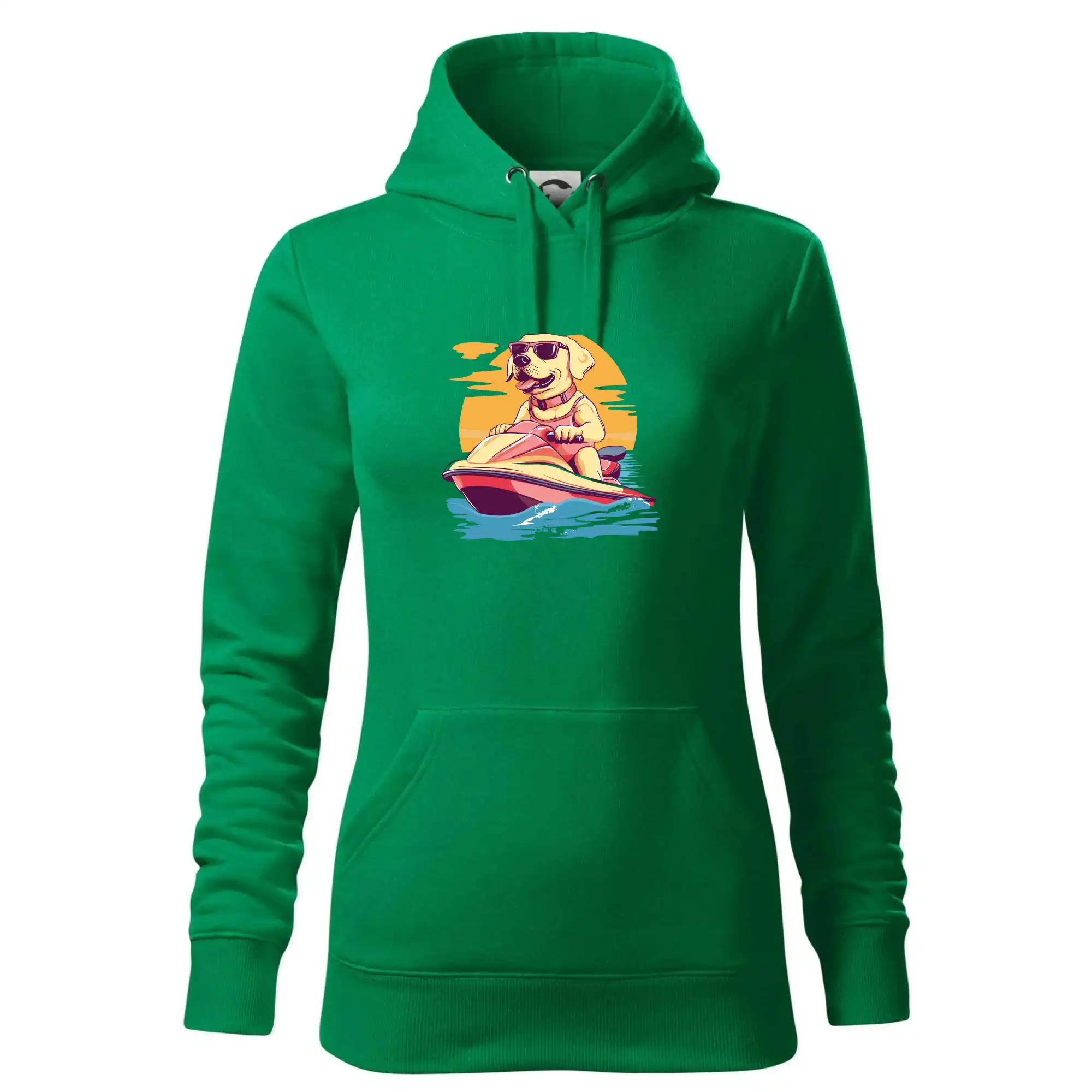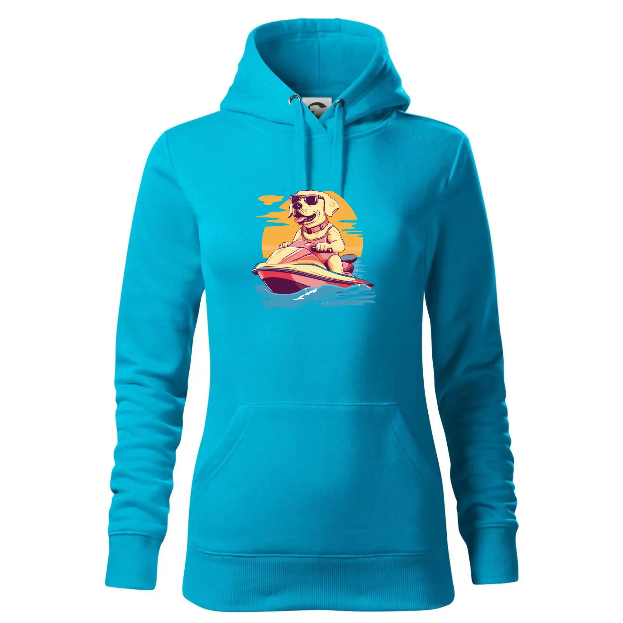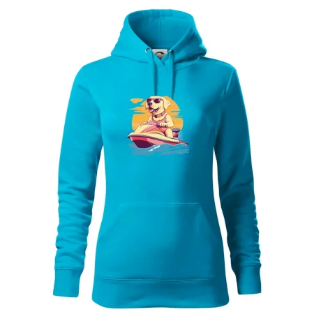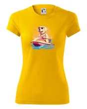 Zlatý retriever na vodnom skútri