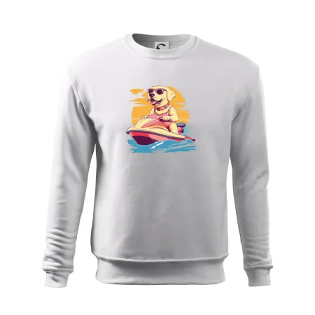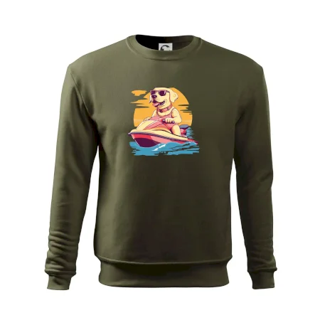 Zlatý retriever na vodnom skútri