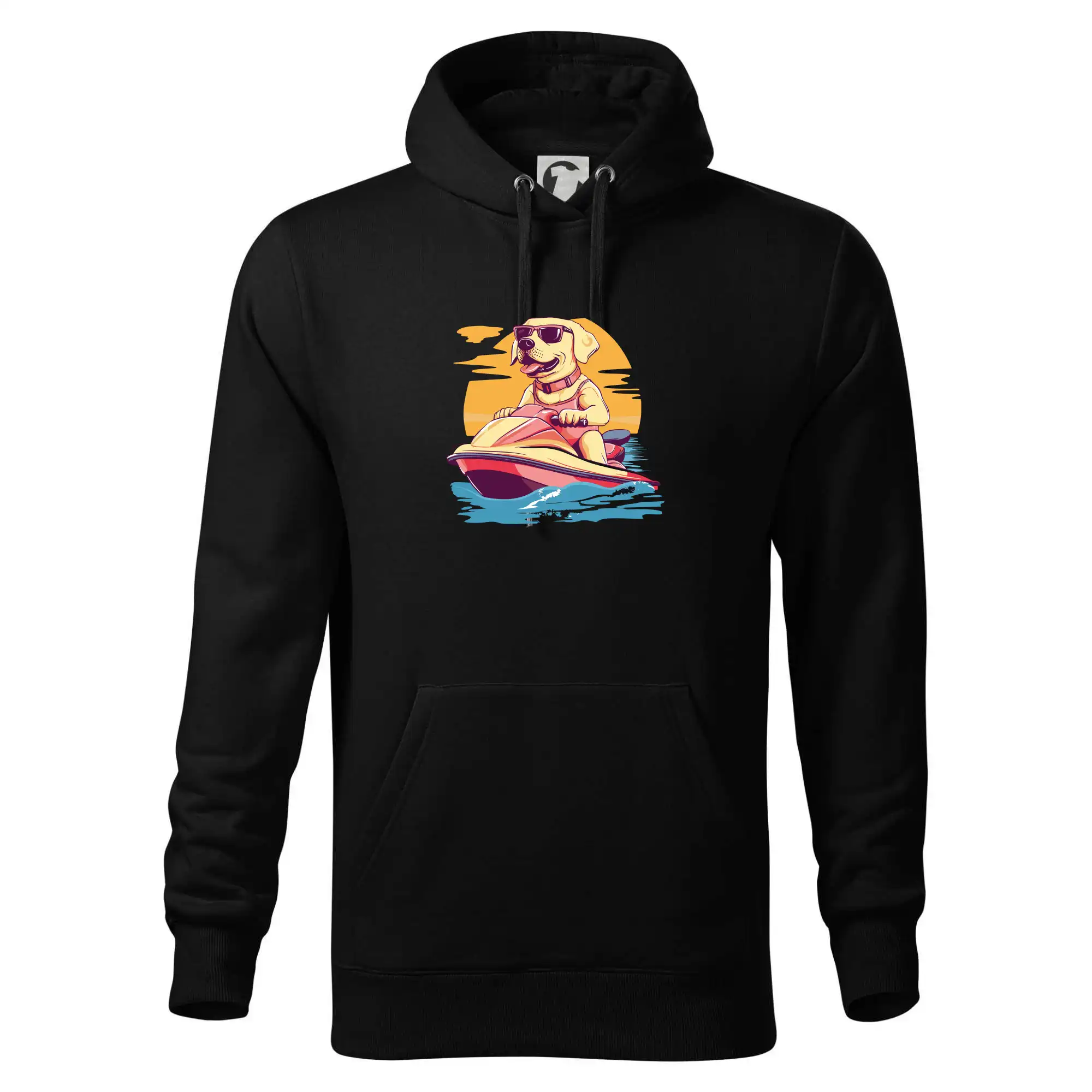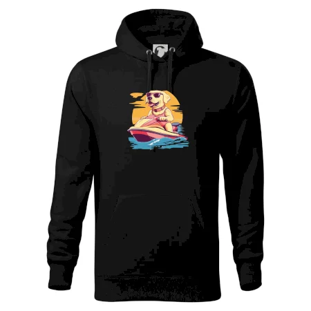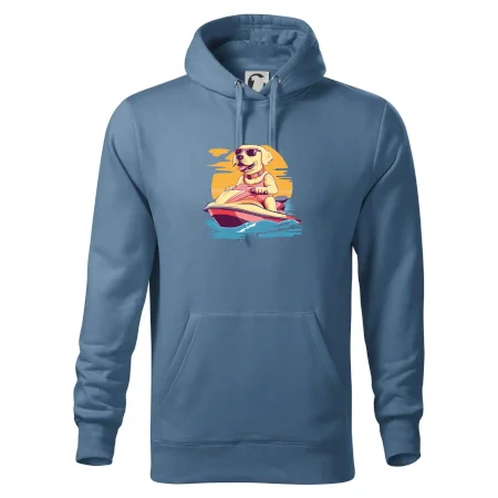 Zlatý retriever na vodnom skútri