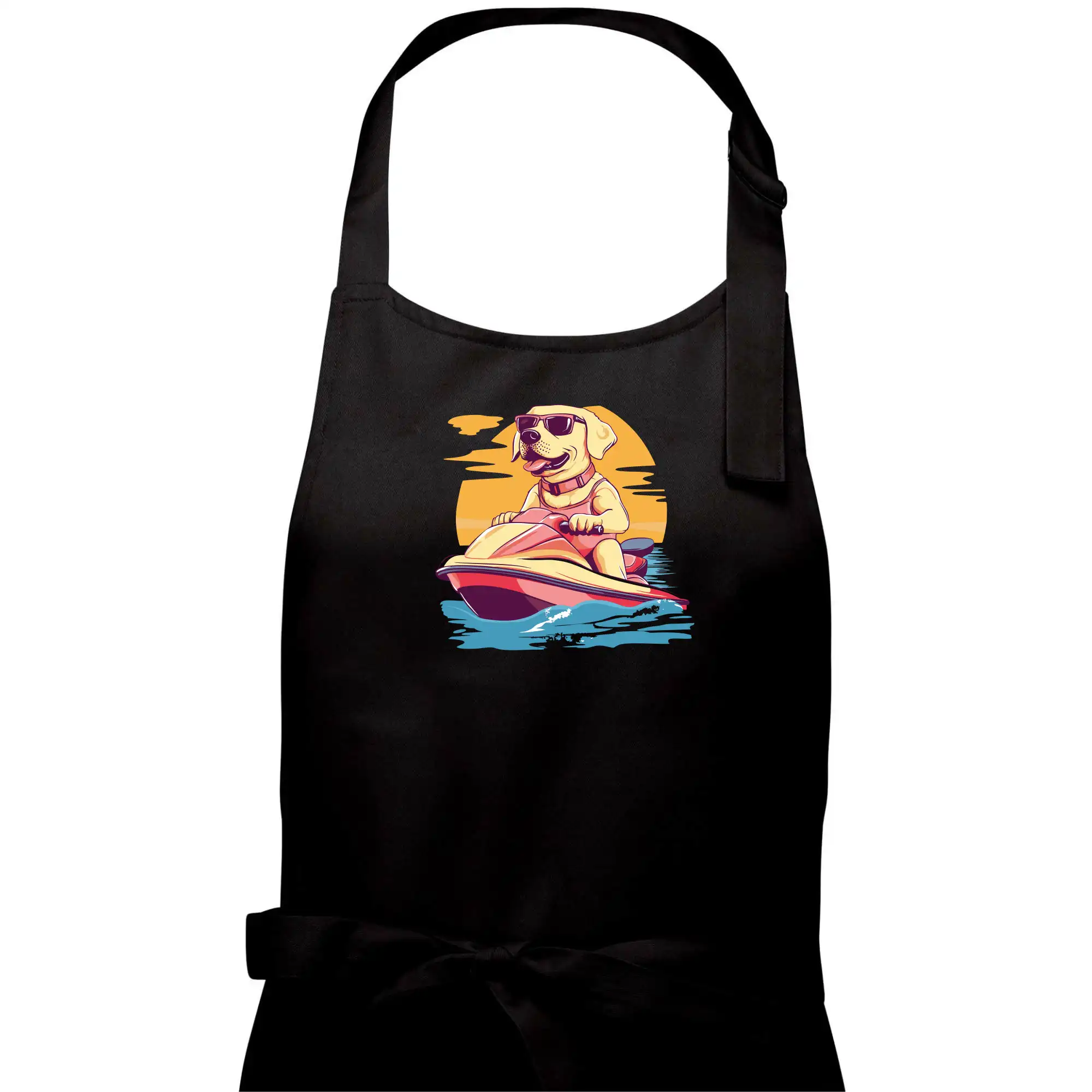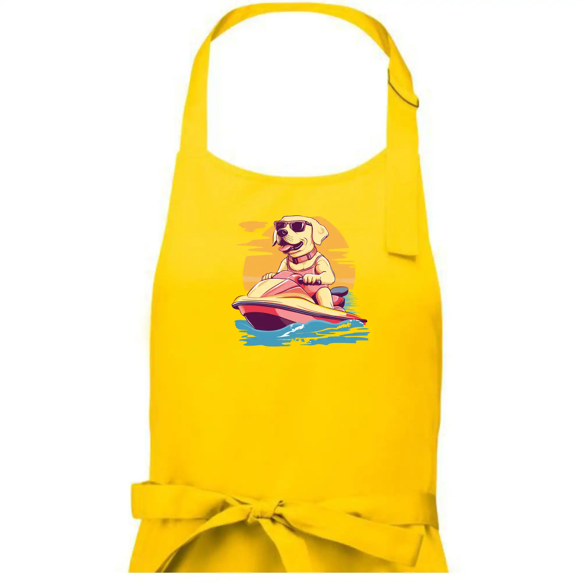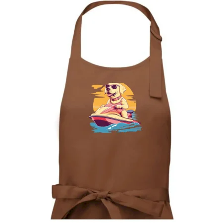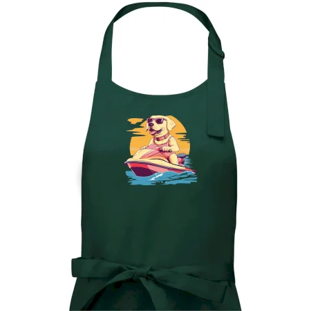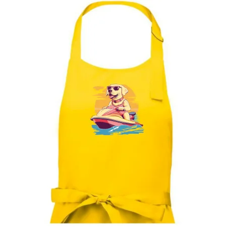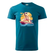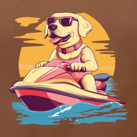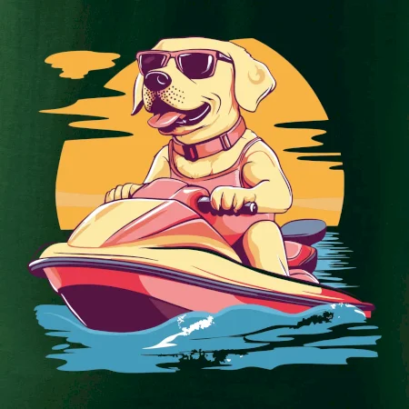 Zlatý retriever na vodnom skútri