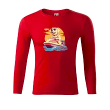 Zlatý retriever na vodnom skútri