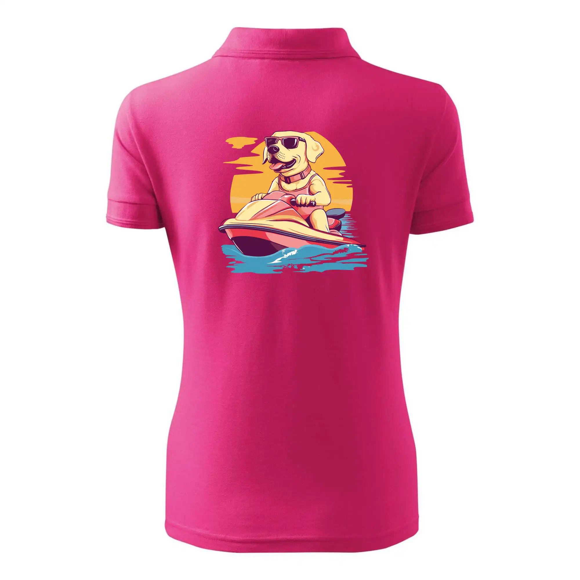 Zlatý retriever na vodnom skútri