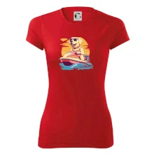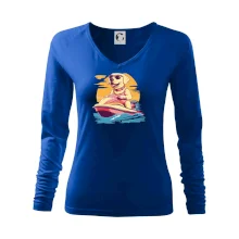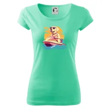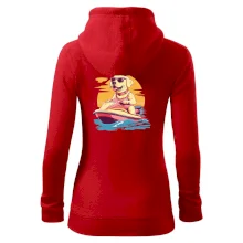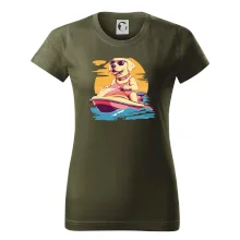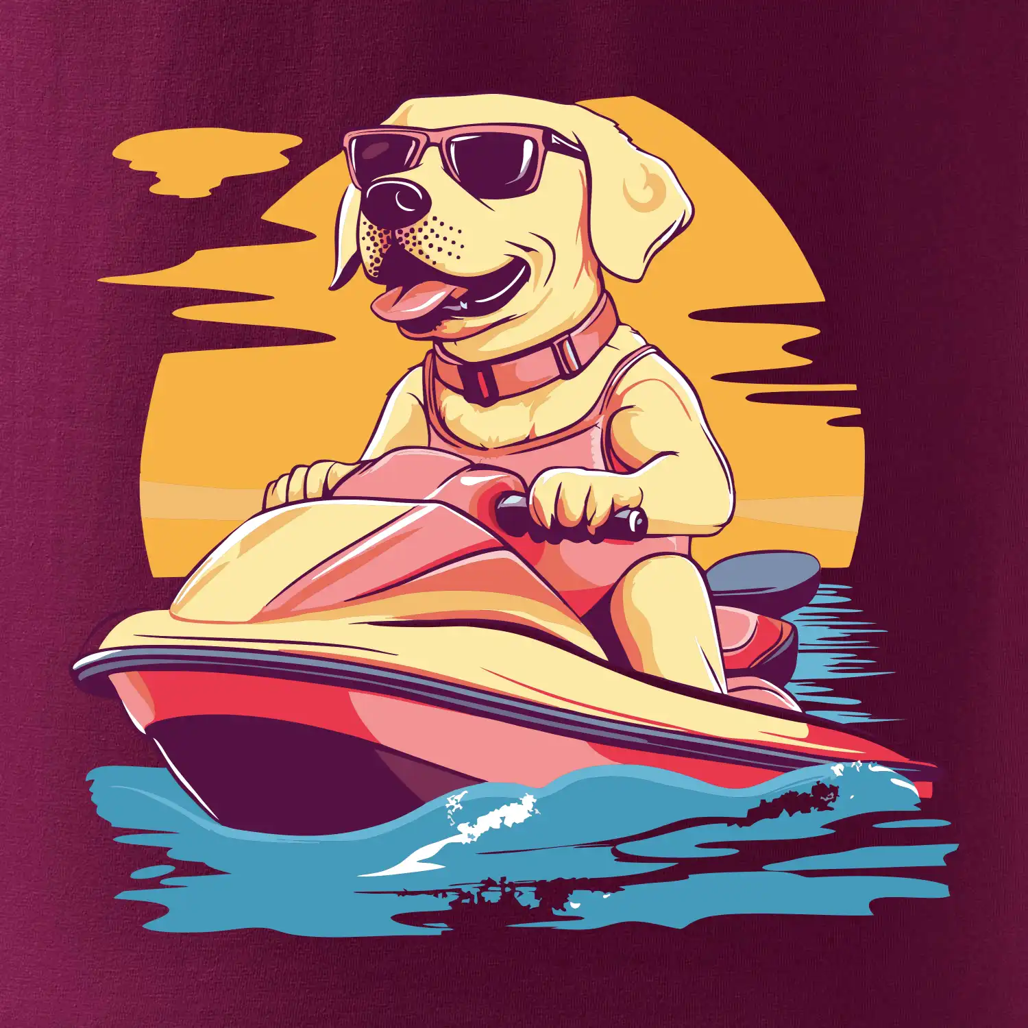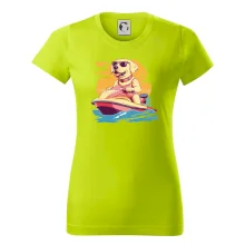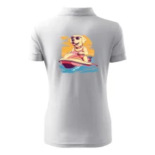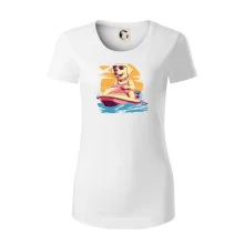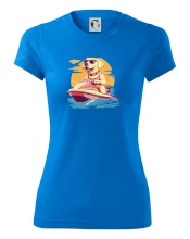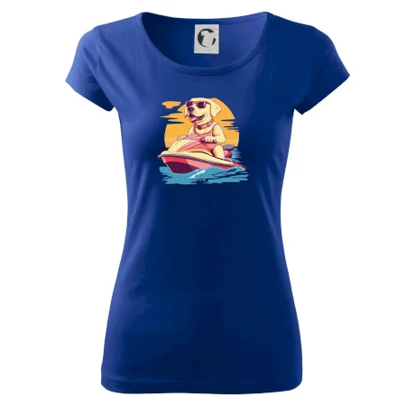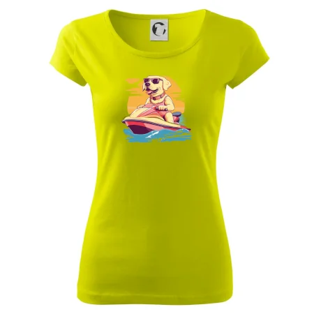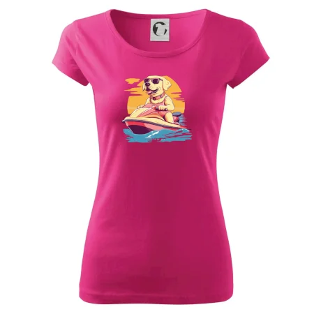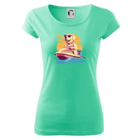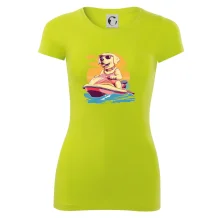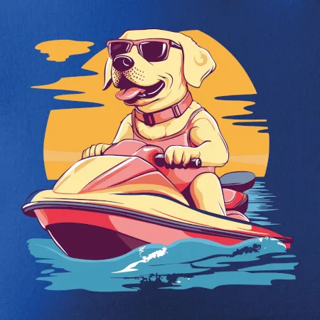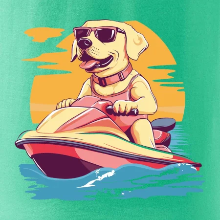 Zlatý retriever na vodnom skútri