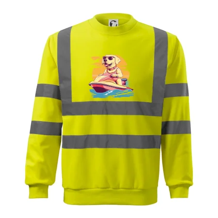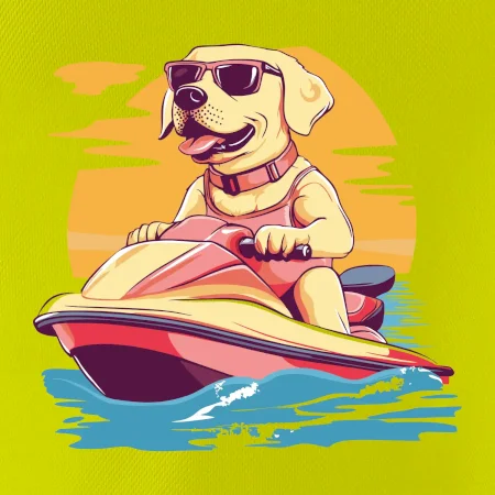 Zlatý retriever na vodnom skútri