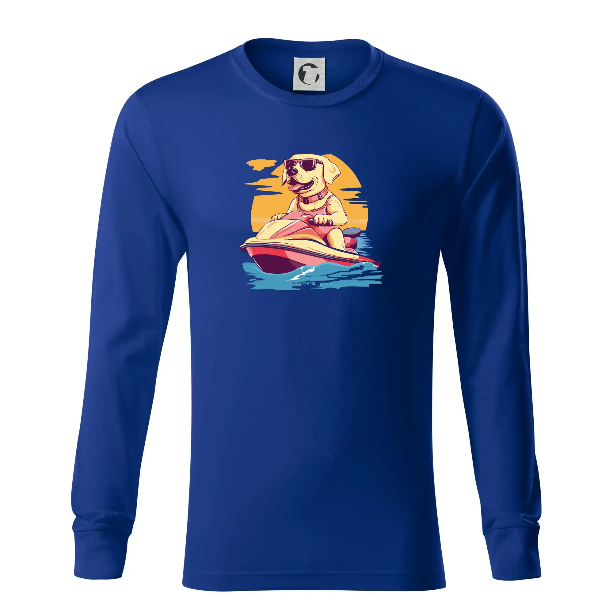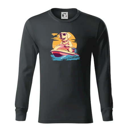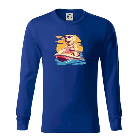 Zlatý retriever na vodnom skútri