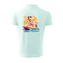Zlatý retriever na vodnom skútri